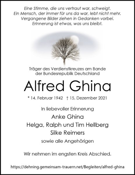 In herzlichem Mitgefühl für Ihre Familie, großer Wertschätzung und gedanklicher Verbundenheit zu Ihrem Gatten.