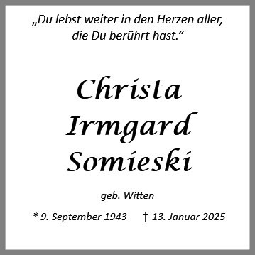 Liebe Familie und Freunde, von unserer lieben und herzlichen Christa Somieski!