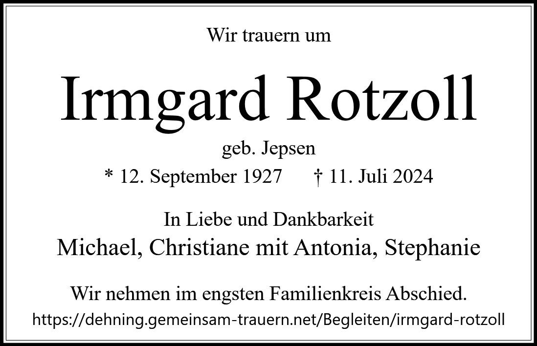 Irmgard Rotzollgestorben am 11. Juli 2024
