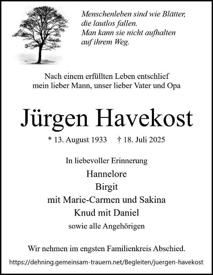 Ich bin sehr dankbar, dass ich Ihren Mann und Sie kennenlernen durfte! Ich kann erahnen was für ein besonderer Mensch Ihr Mann war. Ich wünsche Ihnen und Ihrer Familie alles Liebe!