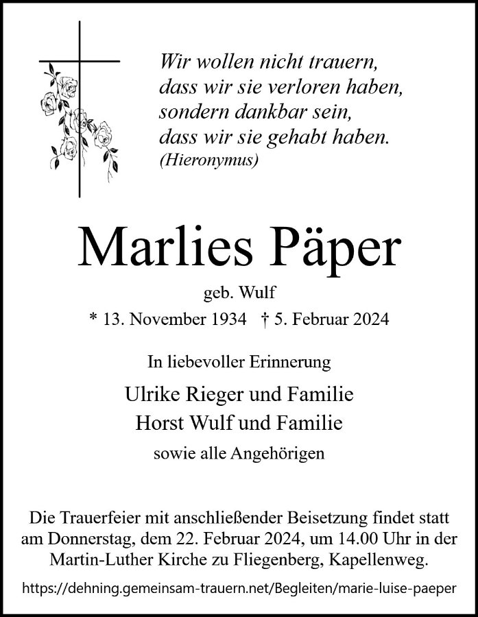 Marie-Luise Päpergestorben am 5. Februar 2024