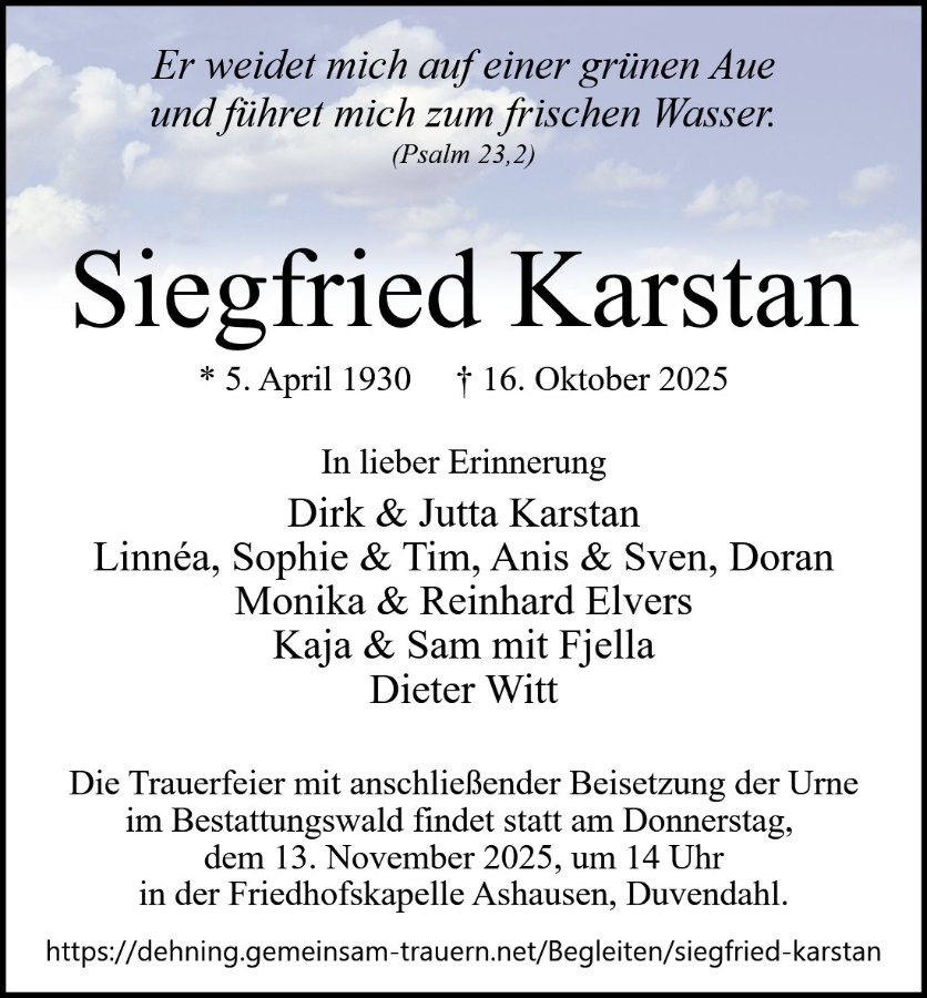 Siegfried Karstangestorben am 16. Oktober 2025